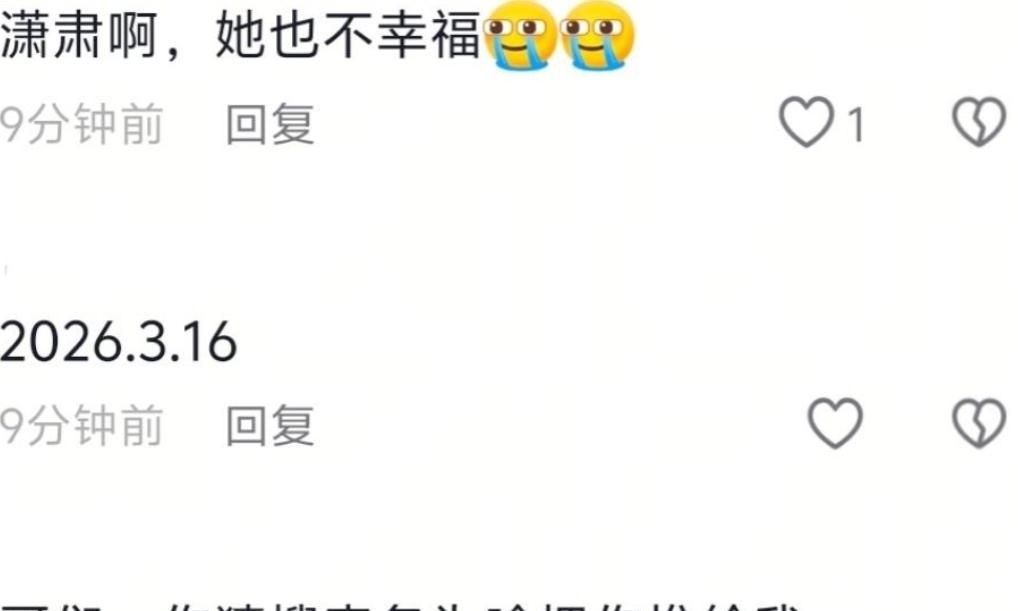 大批网友涌入其社交账号评论区留言,其中一条高赞评论写道:“潇肃,她也不快乐。”